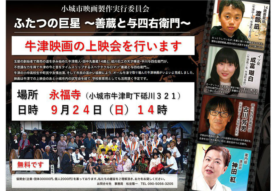 牛津映画「二つの巨星-善蔵と与四右衛門-」上映会をしませんか。